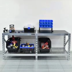 - 2000-lbs (907 kg) total weight capacity, 1000-lbs (453.5 kg) per shelf