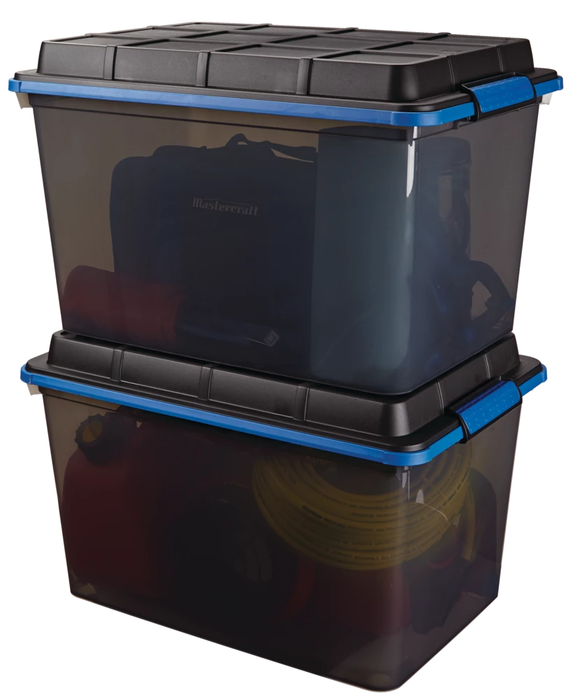 - Mastercraft Heavy-Duty Tinted Storage Totes are an ideal storage and moving solution for your home or office