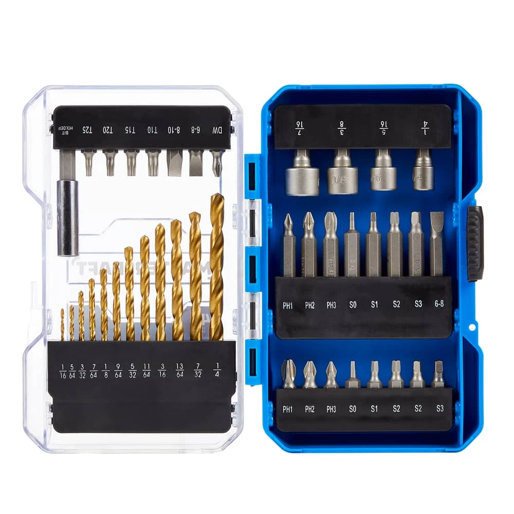 - 40-piece drill and drive bit set includes titanium coating for better, stronger performance