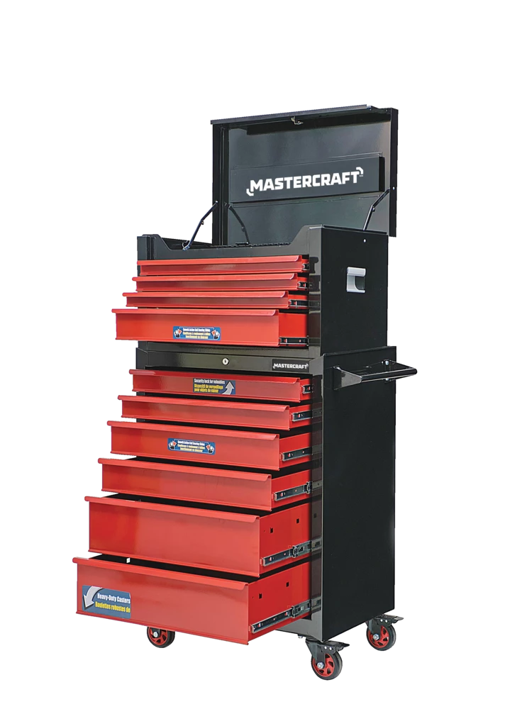 - Mastercraft 4-Drawer Tool Chest features an industrial powder coated finish for superior scratch and corrosion resistance