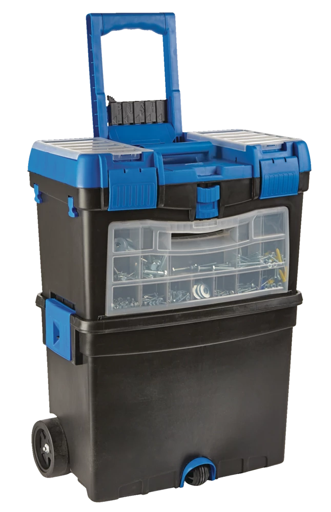 - Foldable handle locks in place for easy mobility