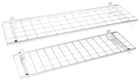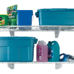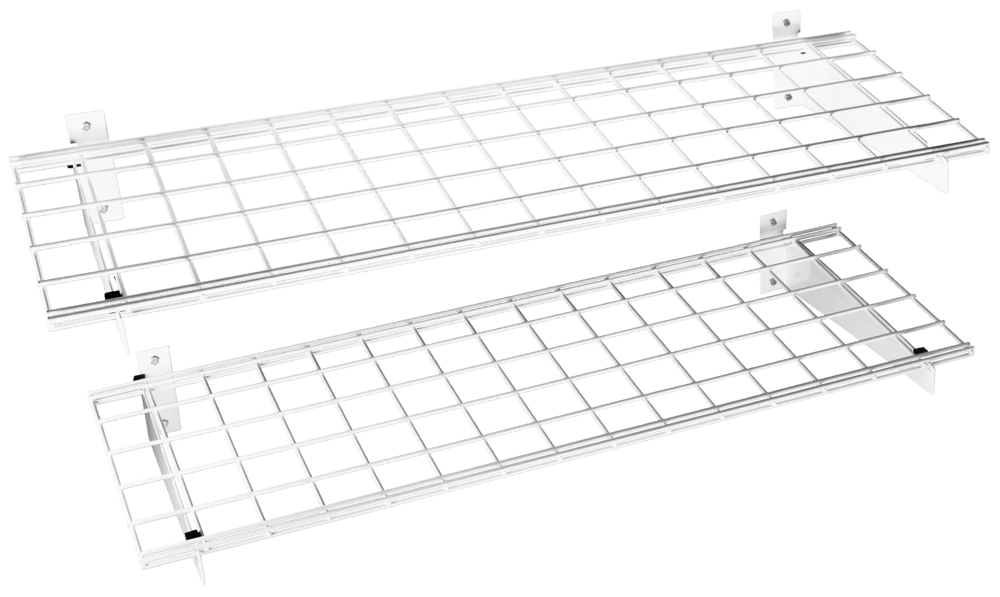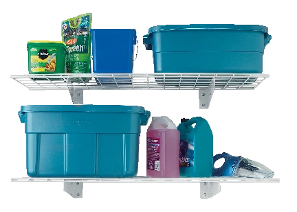 - Heavy-duty shelves mount easily on finished or unfinished walls