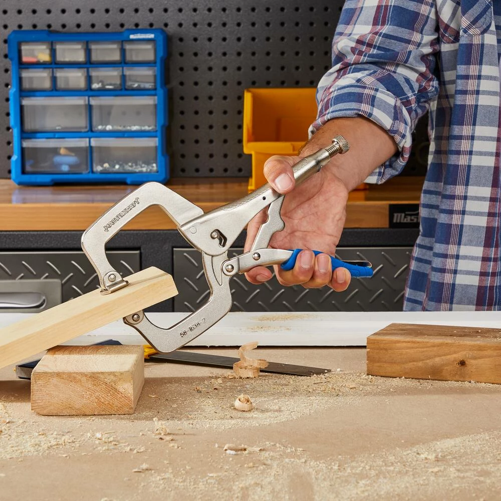 - Mastercraft Wide Jaw Locking C Clamp Pliers features extra-wide C type jaws with swivel pads